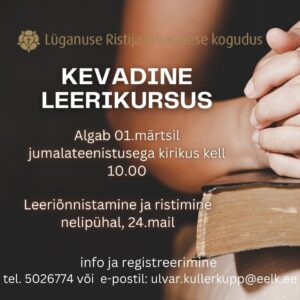 Algab kevadine leerikursus, järgmine leerikooli tund toimub 11.03.2026 veebis. Uuri lisa ja liitu telefonil 5026774